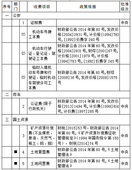 第41问:涉企的行政事业性收费清单项目有哪些?