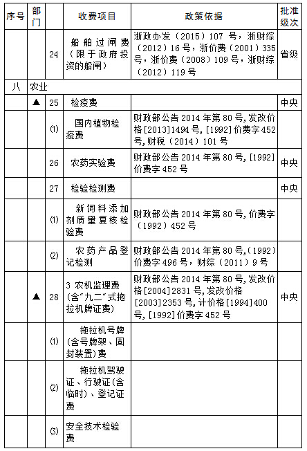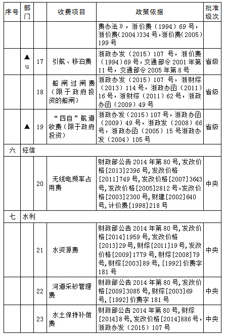 宁波市涉企行政事业性收费目录清单