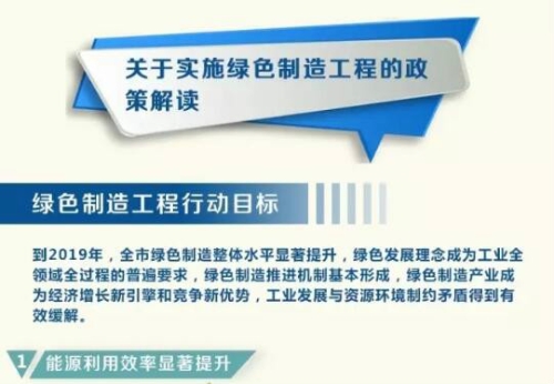 | 实施绿色制造工程。支持企业加大对绿色制造和能效提升的投入,对符合条件的节能技术改造、工业循环经济、资源综合利用、生产过程清洁化改造、工业企业能源管理信息化示范和淘汰落后产能等项目,给予一定补助。完善绿色产品政府采购等扶持政策,支持发展绿色材料、绿色产品、绿色工厂、绿色园区和绿色产业链。将节能环保新材料、新技术、新产品的应用推广作为绿色制造的发展重点,借鉴合同能源管理模式,吸引银行、保险、担保、绿色基金等各类金融资源参与,利用政府采购和产业配套关系整合供应方和需求方,鼓励应用机构积极采购本地企业开发生产的绿色技术和绿色产品,在推动节能改造和节能产品应用的同时,培育壮大我市节能环保产业,推动绿色制造发展。 |